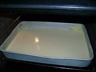 Entretanto desenformei a torta para cima dum pano da loiça molhado e polvilhado com açúcar e barrei com o creme.