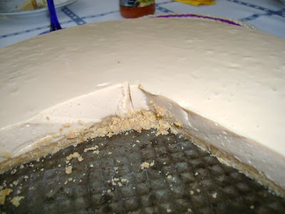 Demolhar as folhas de gelatina e depois misturar bem com o queijo e o leite condensado. Deitar este preparado por cima da base e levar ao congelador até cerca de 3 horas antes de servir. É mesmo garantido.