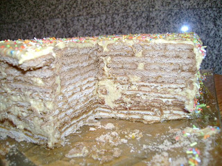 Hoje trago um bolo que foi sempre tradição na minha casa. O bolo de bolacha com creme de manteiga e não com chantilly ou tantas outras invenções que entretanto surgiram. Era o bolo preferido do meu pai e a minha mãe fazia-o sempre para ele pelo menos no dia dos anos - era tradição. Desde que o meu pai faleceu ela não o voltou a fazer e eu... vá-se lá saber porquê, também não, apesar de tal como ele ser grande apreciadora...