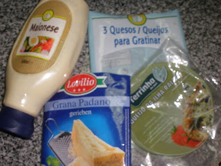 (neste caso usei grana padano, queijo da ilha e uma embalagem que só por si já continha 3 queijo0s diferentes, o que não tem importância nenhuma)