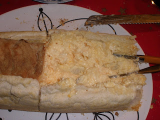 Nota: Se não se comer todo na altura, não faz mal porque frio continua uma delicia, e tudo se aproveita (nesta época de crise é bom), porque como o queijo se derrete no forno e se agarra às paredes do pão de forma, quando o paté chegar ao fim, come-se o pão que ainda continua a saber a queijo. É tudo aproveitadinho, eheheh