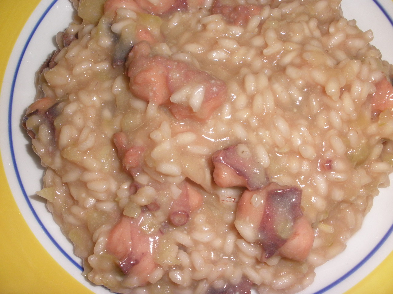 Adicione o queijo reservado, o polvo cortado em pedaços, e a manteiga com alho. Envolva com a espatula e deixe repousar dentro do copo durante 2 minutos. Silva polvilhado com a salsa picada.